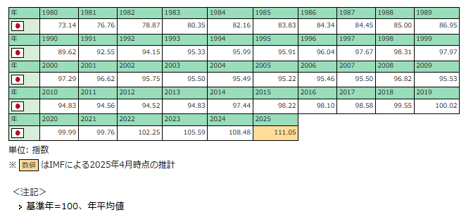 10年前と比べれば約13%程度の物価上昇だと考えられるので(2025年はIMFの推計だから)長期国債の利回りでさえも物価上昇には追いついてはいません。